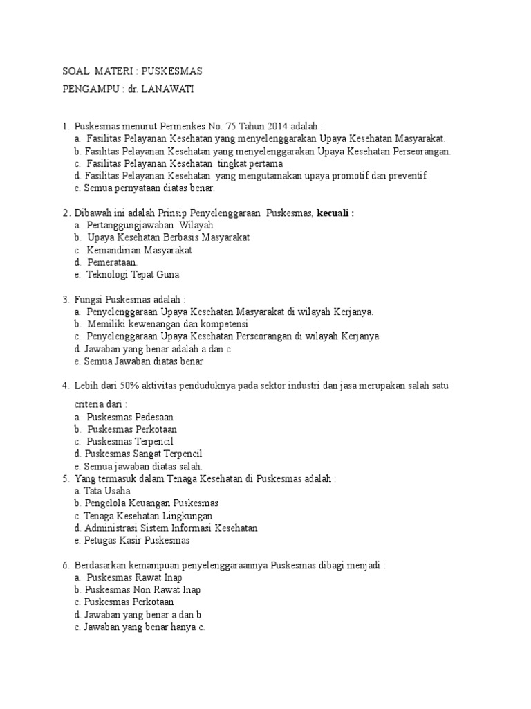 Contoh soal tes tulis jurusan akuntansi penerimaan pegawai puskesmas :